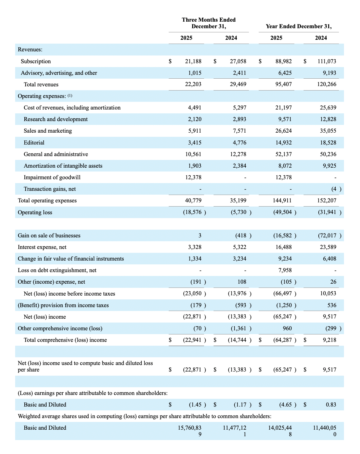 For Q4 2025, advisory, advertising, and other revenue declined $1.4 million, or 58%, versus prior year, due primarily to the previously announced divestitures and discontinuation of certain non-strategic products.