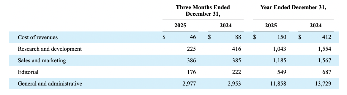 Excluding amortization expense, stock-based compensation, the impact of the previously announced divestitures, transaction-related costs, severance, goodwill impairment, and other non-cash charges, Q4 2025 total operating expenses declined $2.6 million, or 12%.