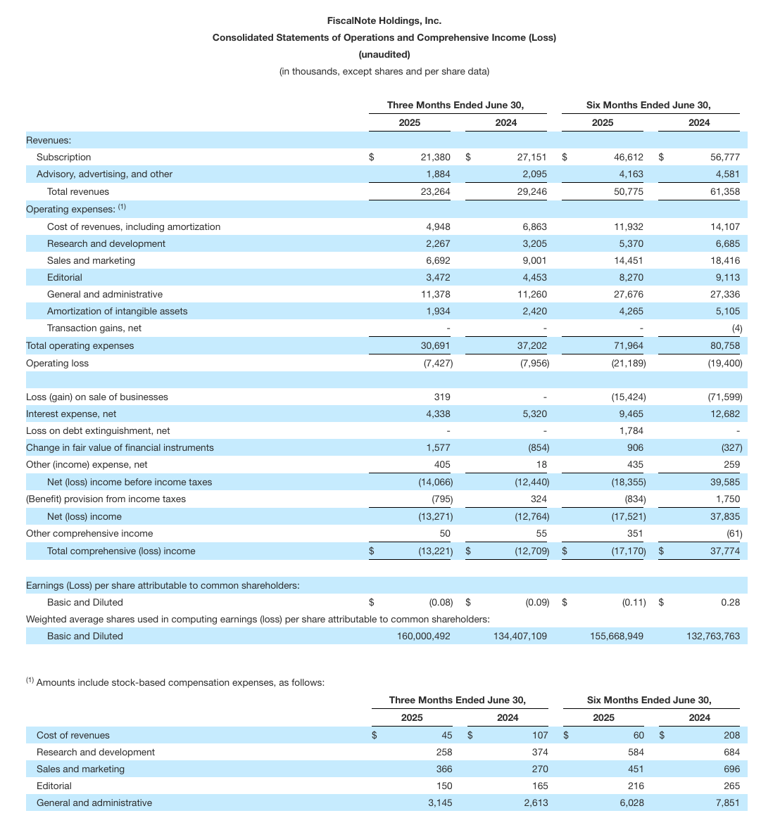 FiscalNote Reports Second Quarter 2025 Financial Results