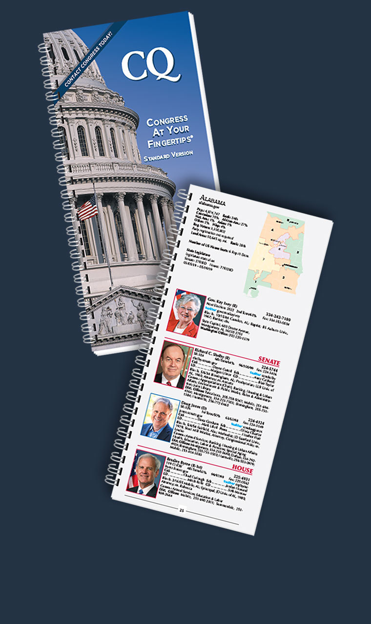 from CQ are up-to-date guidebooks to every member of the US Congress. Customize them for your next event, or order one for yourself.How it works